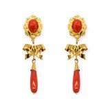 Pendiente oro coral oval y lágrima