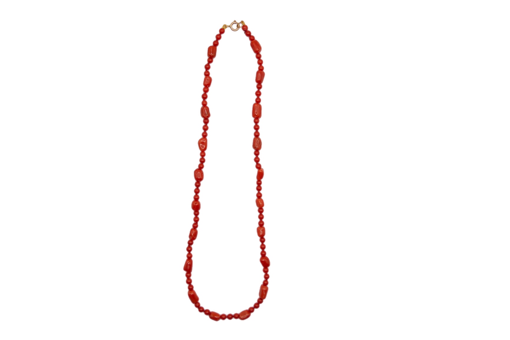 Collar coral barrilete 5-5,5×7,5mm apro y 3 bolas de 3,5mm