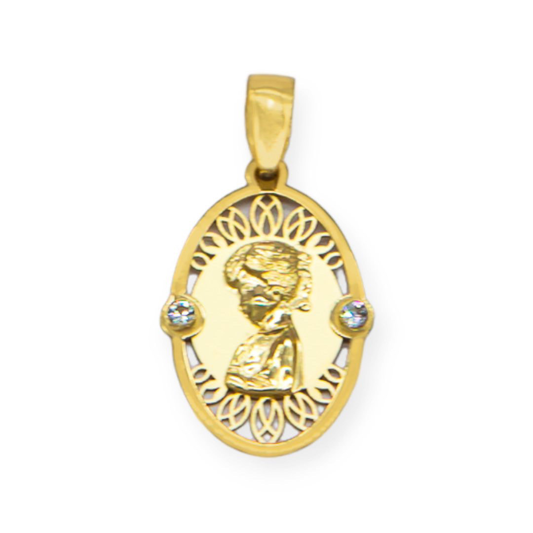 Medallal oro Virgen Niña oval circonita