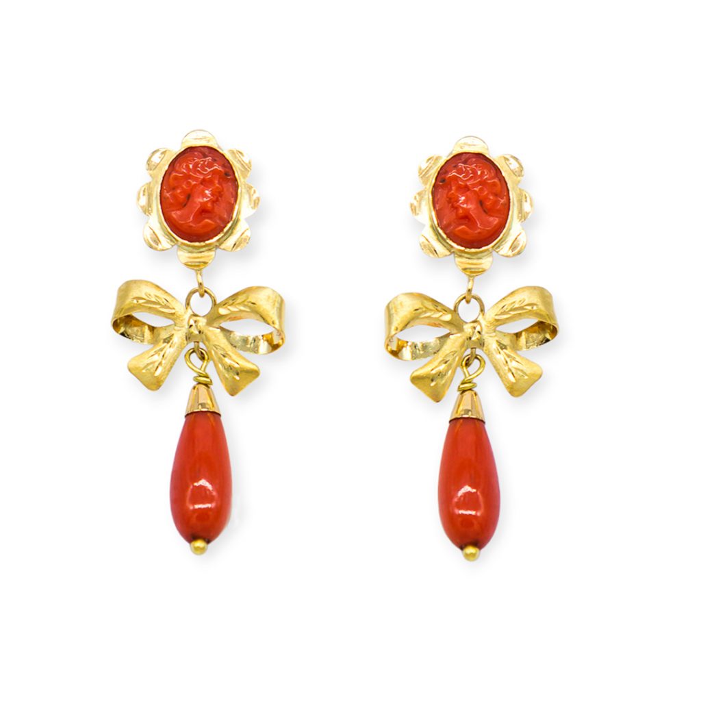 Pendiente oro lazo coral lazo cantidad