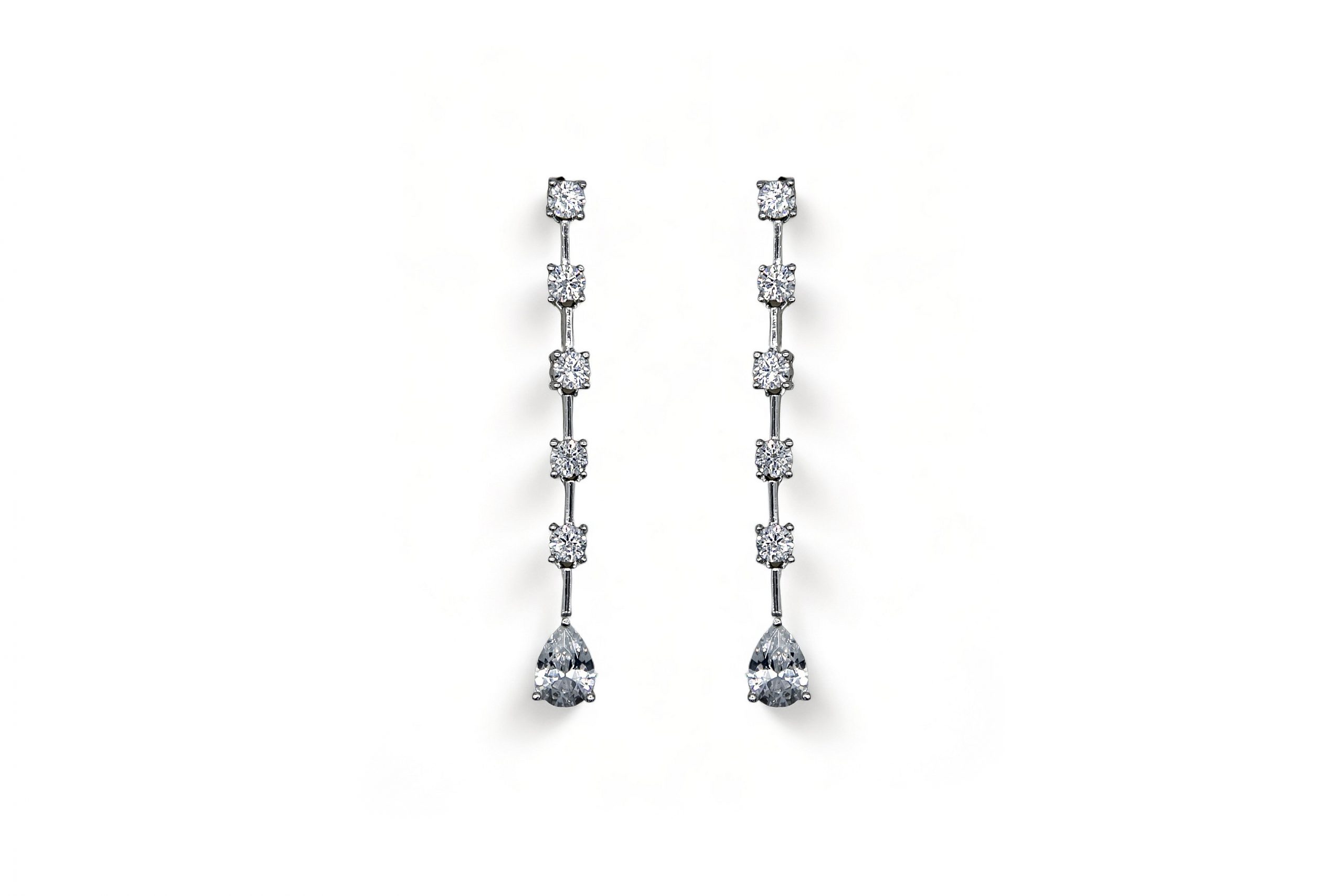 Pendiente plata 5 circonitas en barra montadas en garra y lágrima colgando