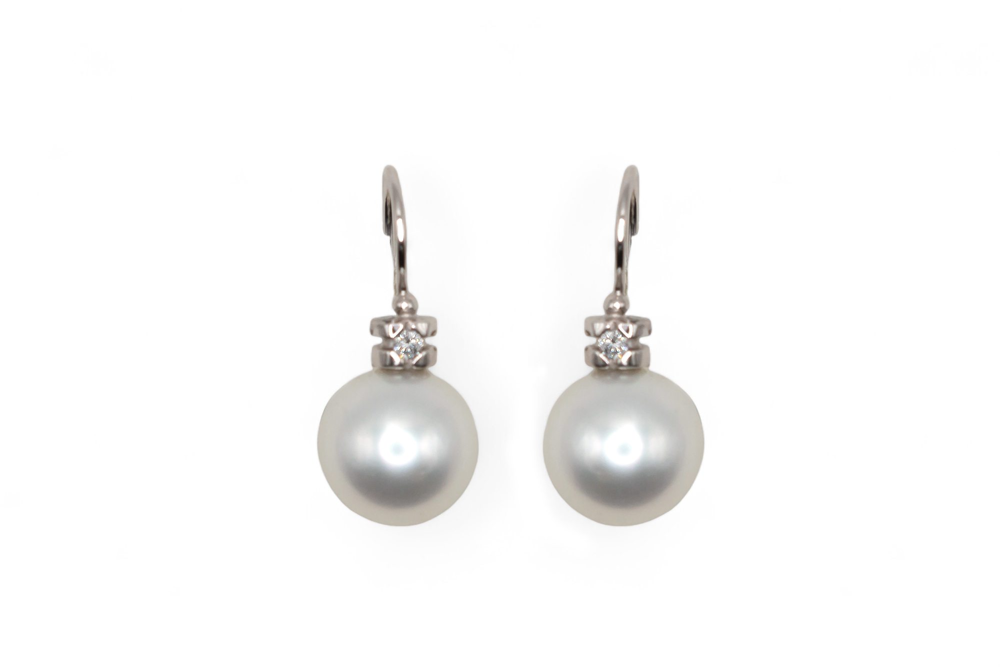 Pendientes brillantes y perlas australianas