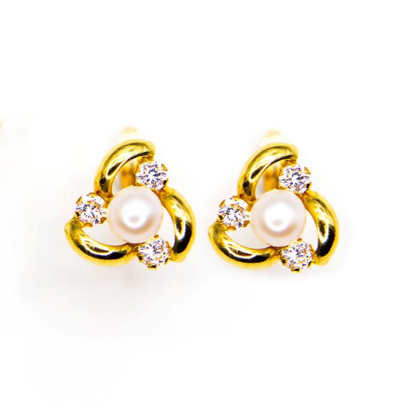 Pendientes oro, perla y circonitas