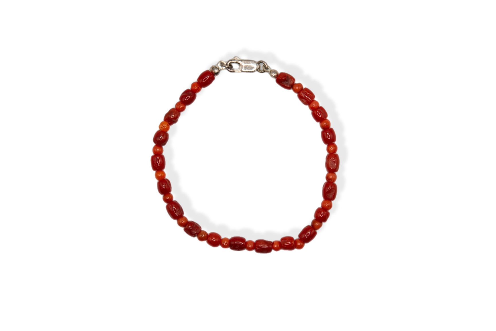 Pulsera coral barrilete rojo 5mm y bola anaranjada 3mm