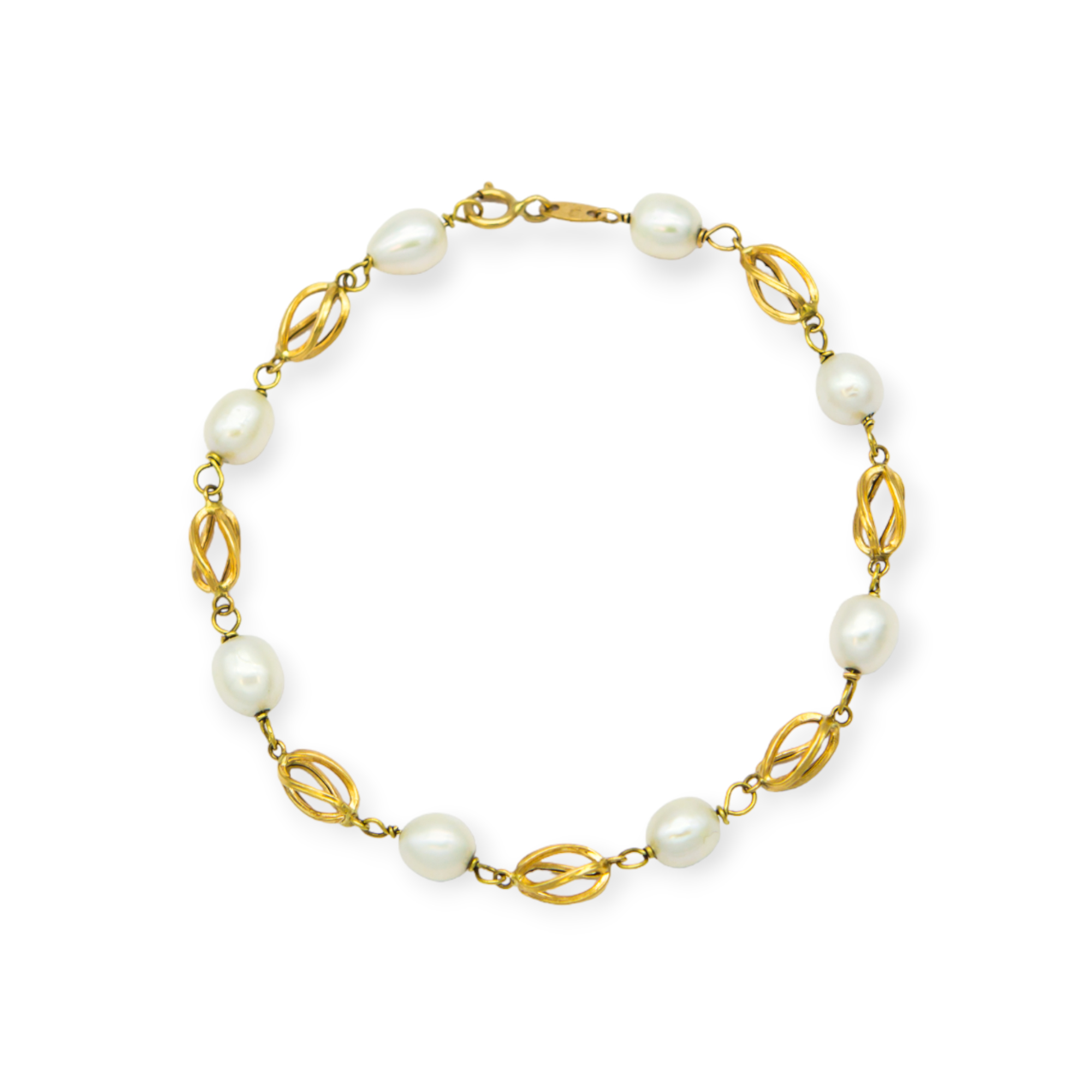 Pulsera oro amarillo perlas y jaulas