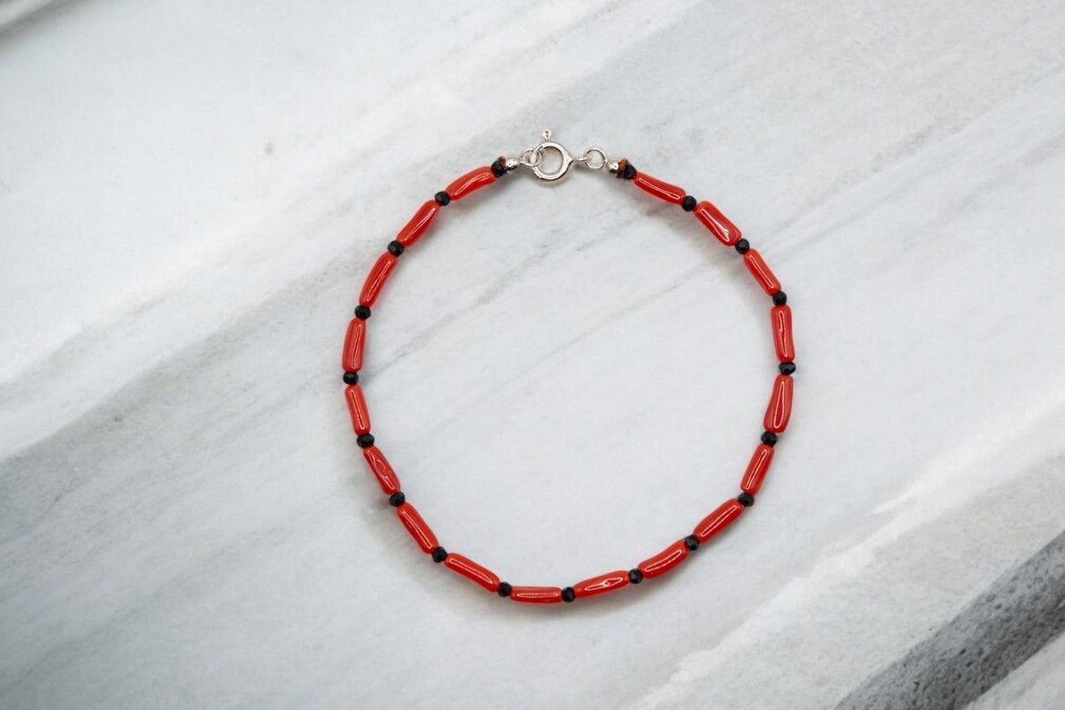 Pulsera coral alargado y onix