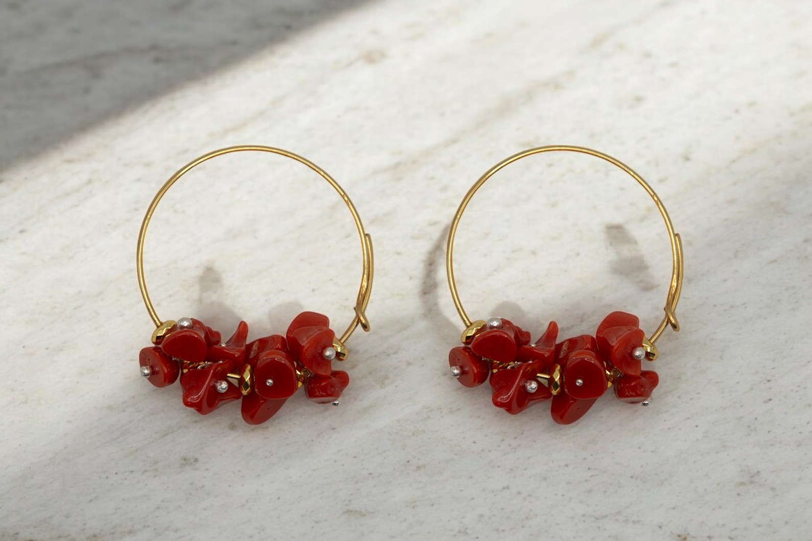 Pendiente aro ramas coral